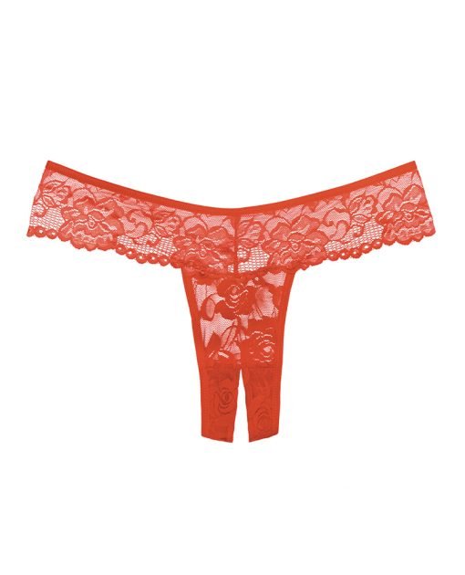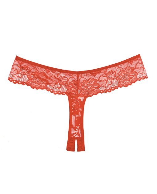 Let your booty do the talking in this feminine and flirty panty featuring a sheer floral lace, a scalloped trim, and a thong cut back. Color: Black One Size. Bust: 34in.-38in. Waist: 26in.-30in. Low Waist: 28.5in.-32.5in. Hip: 36in.-40in.