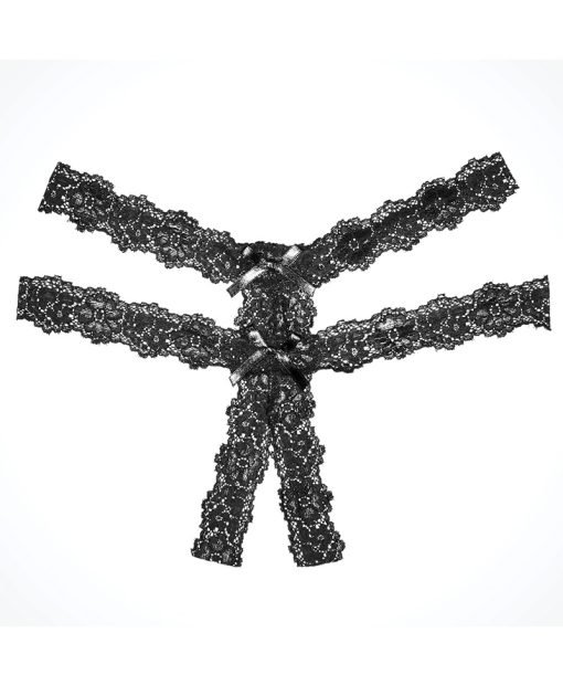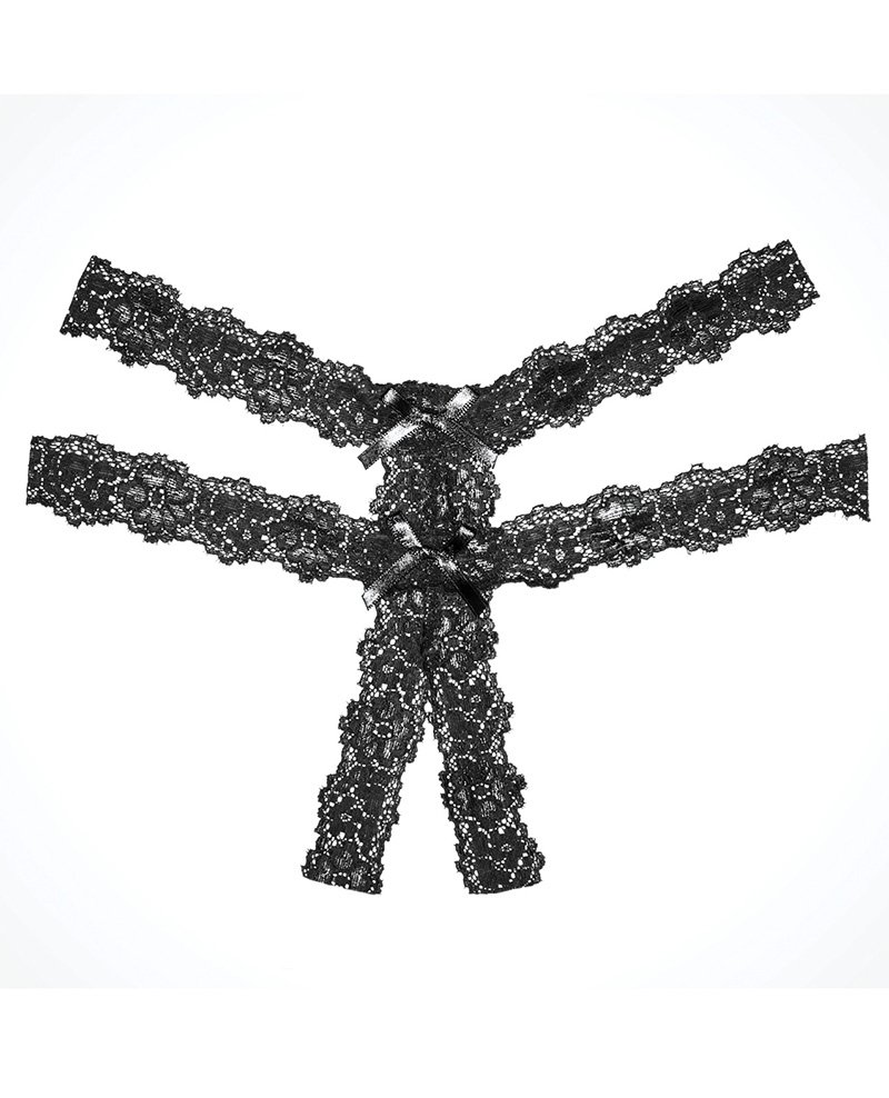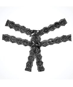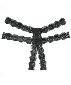 Adore Collection by Allure Lingerie Southern Rhapsody crotchless panty. Color Black. One size fits most. Waist 26 inches to 30 inches. Low waist 28.5 inches to 32.5 inches. Hips 36 inches to 40 inches.