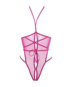 You can save other things for a rainy day…this teddy should definitely not be one of those things. Nicola open cup mesh teddy is that visual aphrodisiac that ever so lightly wraps your body, with skinny sexy straps. Neck straps loop around neck and body tying in back. Front straps wrap around the body and tie in front. Elastic G-string back.