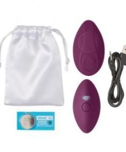 Cloud 9 Panty Pleasures Magnetic Panty Vibe Plum Purple from Cloud Nine Novelties. Wearable Vibe. Remote control. Panty not included. The Cloud 9 Novelties Pleasure Panty vibrator is ergonomically shaped to be worn either inside the panty: held in place by a strong magnet or can be used as a palm vibe. With 10 strong pulsations for ultimate pleasure, the Pleasure Panty vibe also comes with a remote control with a 100 feet range. Whisper quiet, this panty vibe allows users to have fun in public! Features: ergonomic design with contoured point. 10 vibration patterns with a whisper quiet motor. Fixes in place with strong magnet. Made using body safe, phthalate free Premium Silicone. Remote Control with 100 feet range. Bonus silk storage pouch included. Categories: Rechargeable Vibrators, Palm Size Massagers, Sex Toys for Women, Vibrating Underwear. 2022.