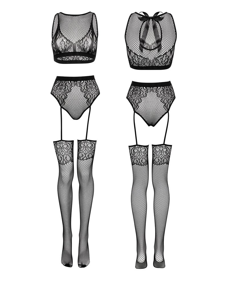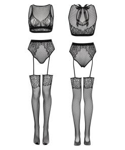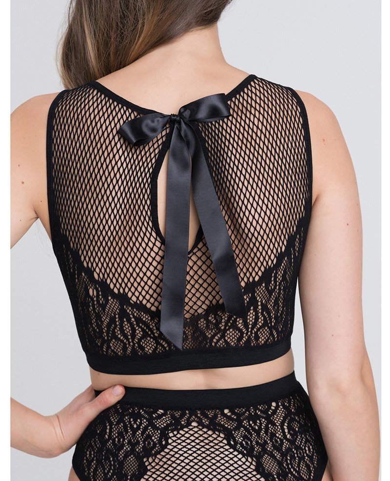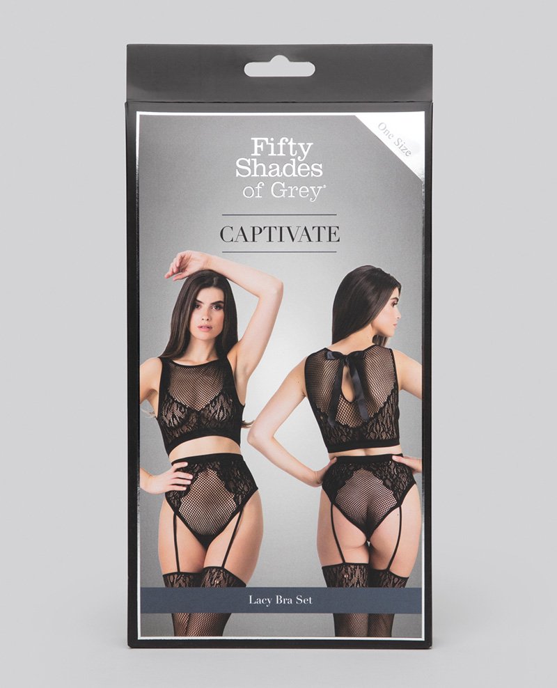 Look every inch the queen of seduction with this bra set combining high-waisted knickers, a longline bra, and suspenders. A smashing combo of lace and fishnet, plus, there’s a keyhole opening to the rear for intense amorous attraction. “Wow, they feel… slinky… and kind of hot… yeah.” – Fifty Shades Darker Pair with your favourite set of stockings and heels for a show-stopping ensemble. Part of the Fifty Shades of Grey Official Pleasure Collection approved by author E L James.