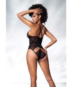 Bodysuit with cut-outs perfectly positioned to enhance your curves. Geometric lace, sheer mesh, Adjustable straps and crotch fastening and medium coverage. Fabric: 96% Polyamide 4% Elastane/83% Polyamide 17% Elastane. Care: Hand Wash. Do not Bleach. Do not Iron. S/M - Bust 34-37 inches. Waist 25-28 inches. Hips 35-38 inches.