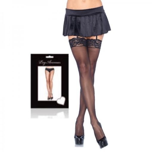 Nylon sheer thigh highs with lace top. Plus size. Live out your fantasy with Leg Avenue.