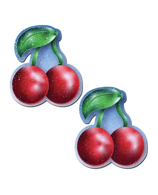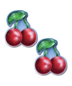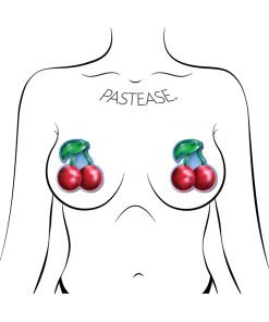 Bright Red Cherries with Green Leaf & Stems Nipple Pasties by Pastease® are hand-made in the USA of soft form-fitting material that forms seamlessly to curves and resists wrinkling over hardening nipples.