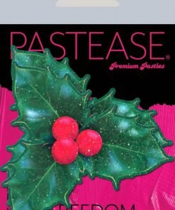 Pastease Xmas Winter Holly with Red Berries Pasties. Christmas Winter Holly with Red Berries Nipple Pasties by Pastease are hand made in the USA of soft form fitting glitter velvet material that forms seamlessly to curves and resists wrinkling over hardening nipples. Just peel and stick these Christmas Holly pasties on clean, dry skin! All Pastease pasties feature latex free, medical grade, waterproof adhesive that stays securely in place for as long as you like and until they are gently removed. Conceal or reveal with Pastease nipple pasties when worn with a sexy outfit, daring bikini, sheer top, revealing dress, Hefty bag, body lotion, crazy costume, party theme or nothing at all! Dimensions 3.7 inches by 3.5 inches. Coverage 1.7 inches. Pastease are the fun maker that brings out your inner Tease! All Pastease products are hand made, so the finished product you receive may vary slightly from the posted image. Go get your sexy fun freedom on! XOXO Pastease!