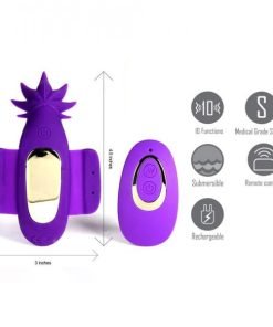 Sativa Remote Control Panty Teaser Purple from Maia Novelties. 10 function panty vibrator. Remote control operation. Cannabis leaf shaped stimulator. Medical grade Silicone. Rechargeable vibrations. Waterproof and submersible vibrator. Fits most panties. Please note no panties included.