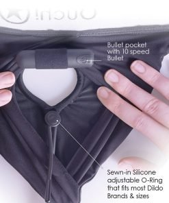 Simple yet elegant, these strap-on panties are perfect for you and your partner. Don’t worry about complicated straps and buckles, just slip them on, add the toy and enjoy. With a variety of styles, shapes & sizes, everyone will find their perfect fit. With the patent-pending O-Ring System, almost all dildos and dongs will fit into this strap-on panty without the need of additional O-Rings. Each panty comes with a premium quality silicone rechargeable 10-speed vibrating bullet for extra sensations for you and your partner. Made of high-quality elastic compression material for a better fit, comfort & performance. The lightweight breathable fabric will draw away moisture from the body ensuring that when things get hot, you stay cool. Perfect for Packing, Pegging & Penetration. Available in 3 sizes: XS/S, M/L, XL/XXL. 1-year warranty. Pairs perfectly with All Ouch! & RealRock Dildo’s & Dongs.
