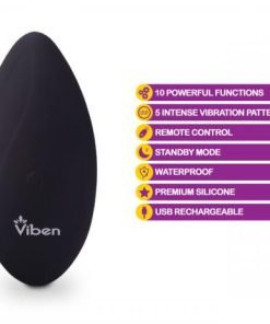 Viben Racy 10 Function Panty Vibe Black. Redefine sexy time with Racy, a sleek, flexible, rechargeable, on the go panty vibe. Tuck this mighty mini in your hand or in your undies. Racy Panty Vibe features a powerful motor strategically placed at the tip of the vibe for intense or titillating pleasure. Tease yourself or your partner with this unique, multi-function, remote controlled vibe. Racy Panty Vibe is great for couples or solo play. Racy Panty Vibe is USB rechargeable, waterproof in an elegant Black. Remote controlled panty vibe, with sleek, flexible contoured shape for comfort. To turn on, press the power button on the toy for 3 seconds, then press the remote power button to toggle through vibration modes. May be used with or without remote control. Features: 10 powerful functions. 5 intense vibration patterns. Remote Control. Standby mode. Contoured. Flexible fit Panty Vibe. One touch control Button. Waterproof vibrations. Made using body safe, phthalate free materials Premium Silicone. USB Rechargeable. RoHS Certified. Prop 65 Compliant. 1 year warranty. Specifications Color Black. 3.75 inches in length. Width 1.79 inches. Bulk weight 2.79 ounces. Battery information. Full charging time is 2 hours – not to be used on Spec Sheet. Play time is approximately 1 hour – not to be used on Spec Sheet. Rechargeable Remote Control. Remote control information. Panty Vibe has a range up to 25 feet. Viben – Racy Panty Vibe. Categories: Rechargeable Vibrators, Palm Size Massagers, Sextoys for Women, Vibrators for Underwear. Panty is not included. 2022.